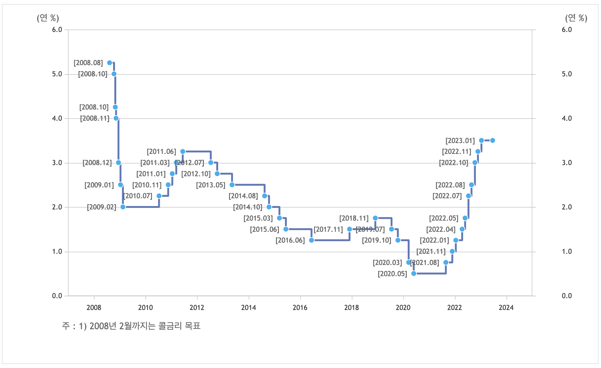 한국은행의 기준금리는 2023.1.13일 기준 3.5% 입니다.