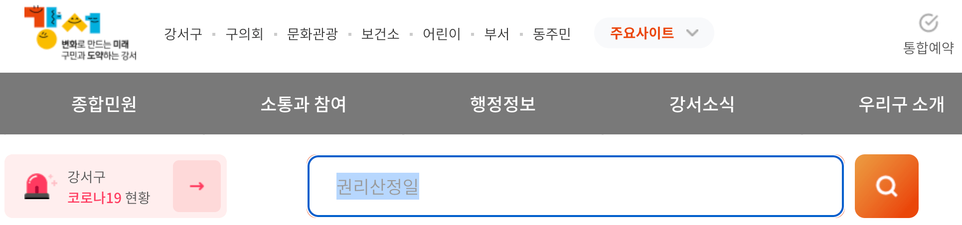 등촌2동의 권리산정일은 강서구 대표홈페이지에서 로그인 없이 확인할 수 있습니다.